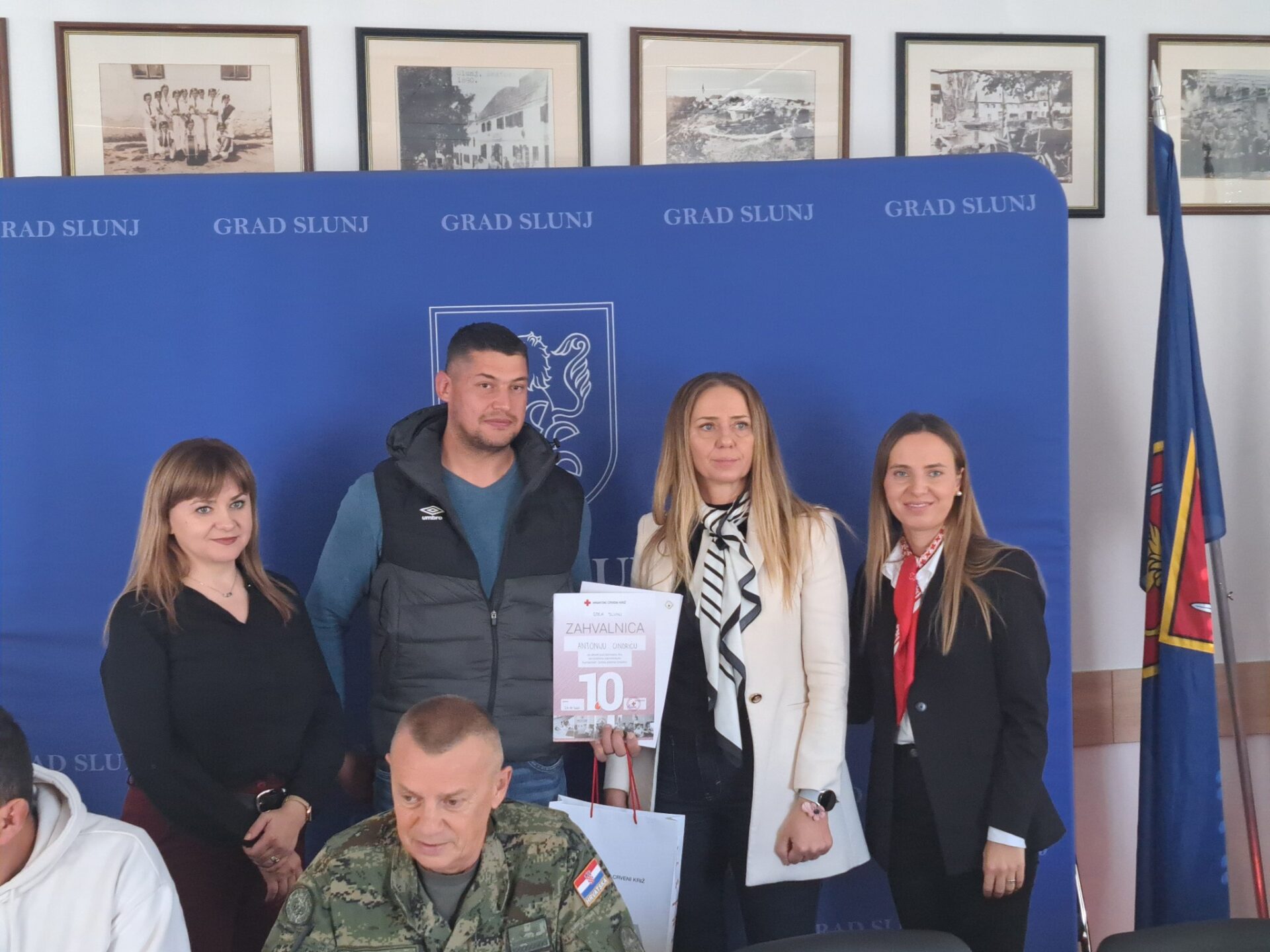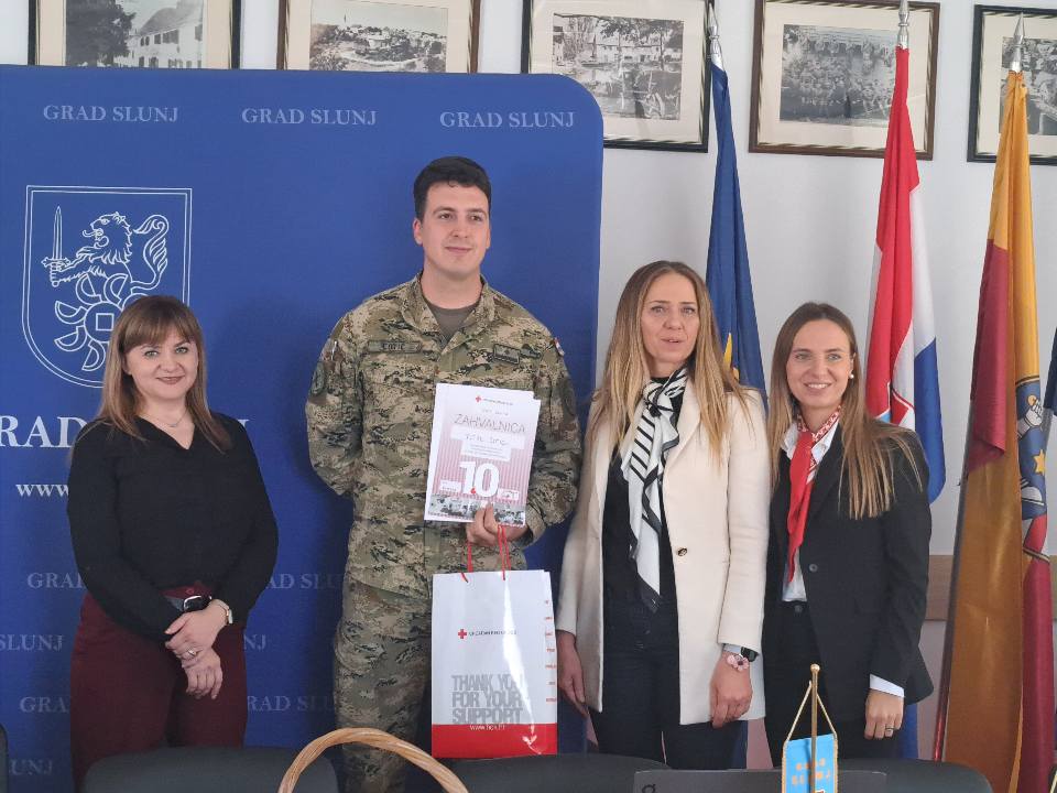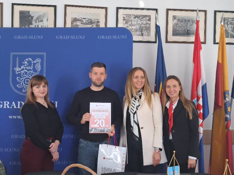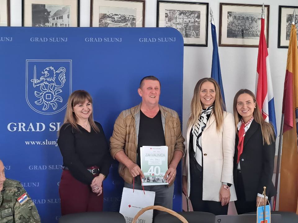 Povodom Dana dobrovoljnih darivatelja krvi, koji se u Hrvatskoj obilježava 25. listopada, Gradsko društvo Crvenog križa Slunj organiziralo je prijem kod gradonačelnice Mirjane Puškarić za darivatelje koji su svojim humanim činom zaslužili priznanja Hrvatskog Crvenog križa.