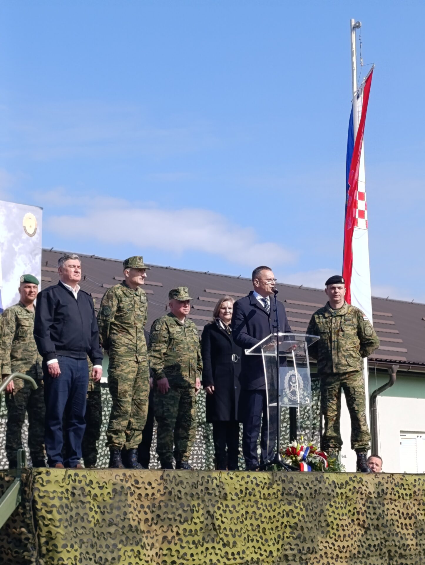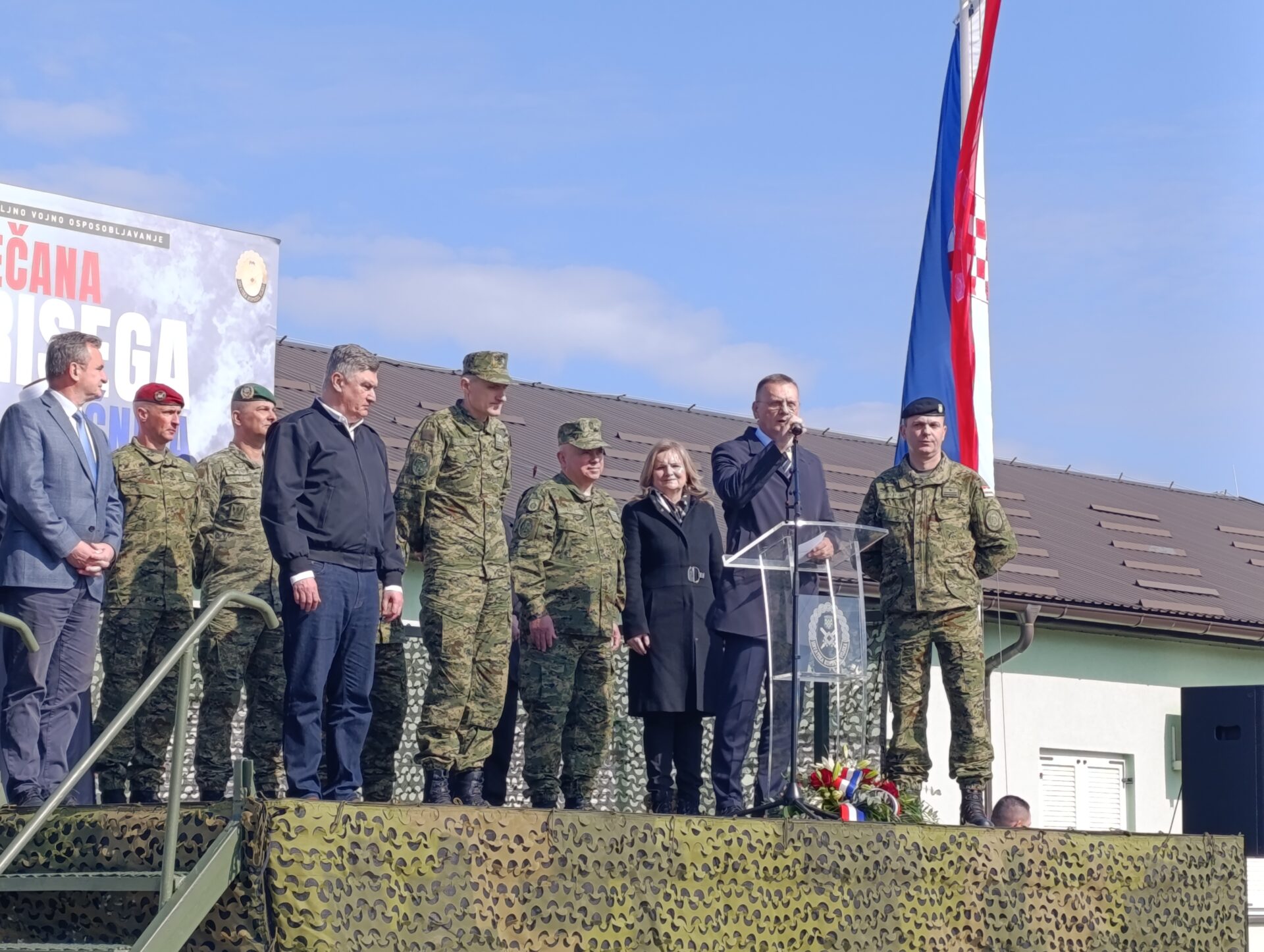 Svečanosti su nazočili predsjednik Republike Hrvatske Zoran Milanović, izaslanik Vlade RH, tajnik Ministarstva obrane general pukovnik u miru Drago Matanović, načelnik Glavnog stožera Oružanih snaga RH, general-pukovnik Tihomir Kundid koji su se i obratili prisutnima kao i gradonačelnica Mirjana Puškarić te ostali uvaženi gosti. Poslušajte dio njihovih govora: