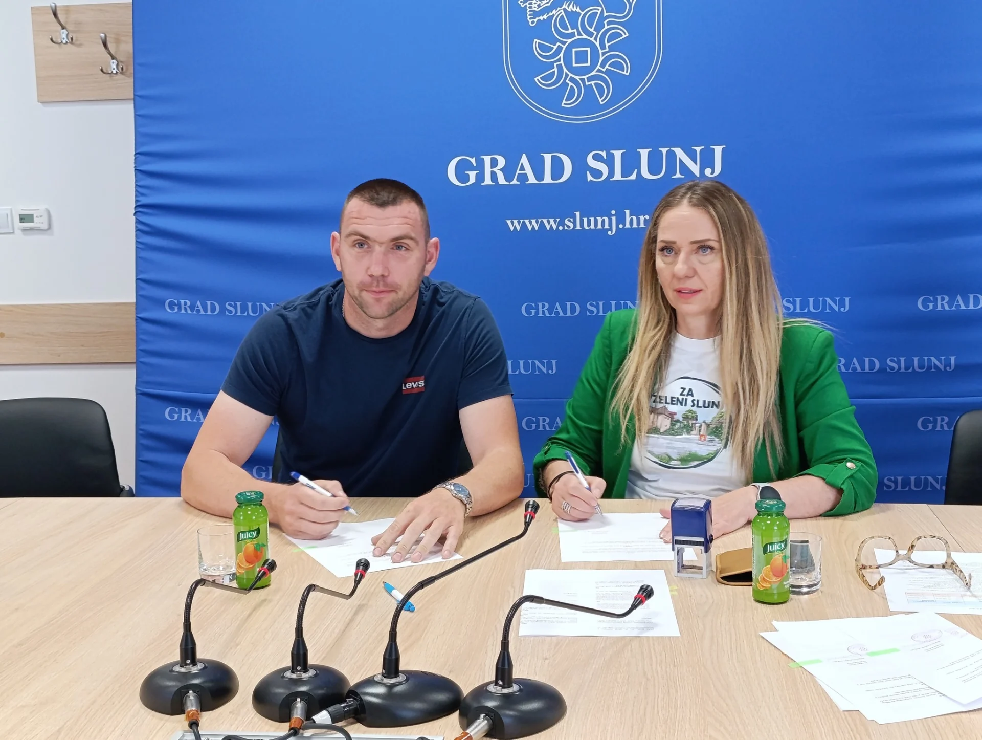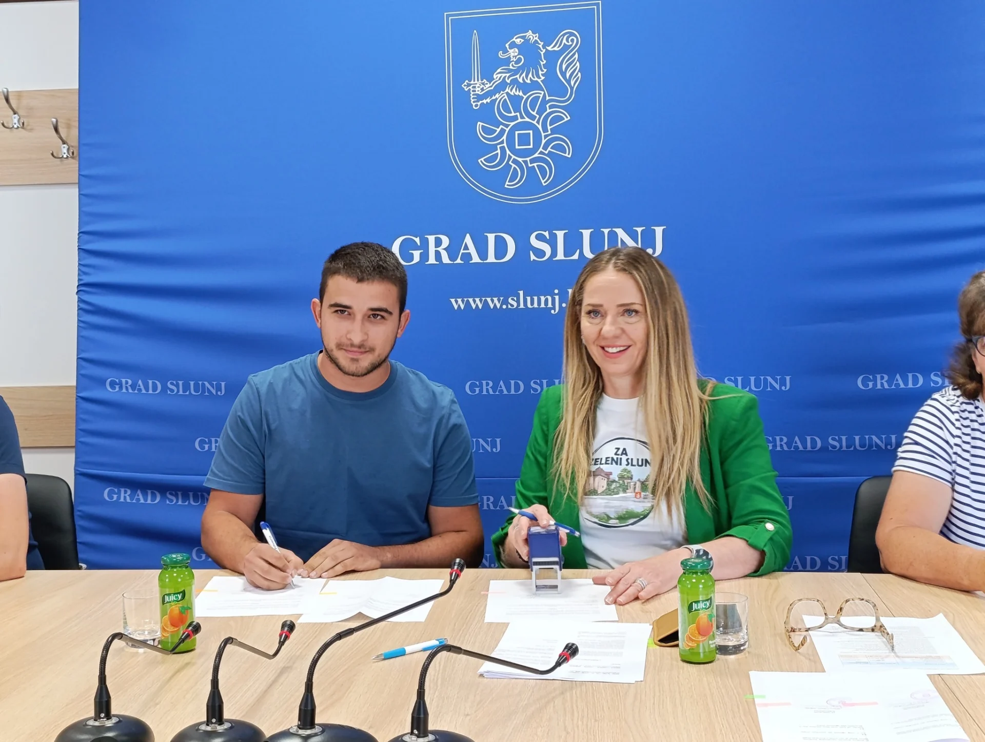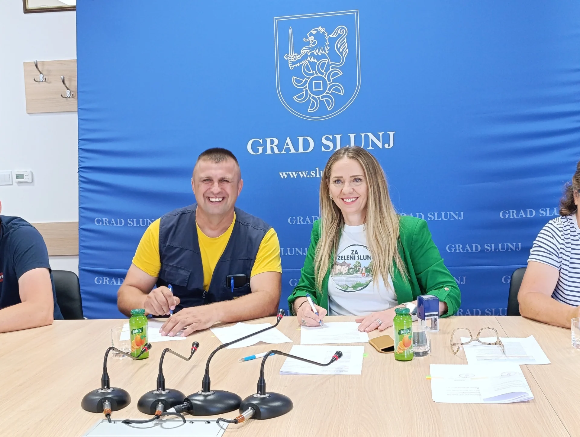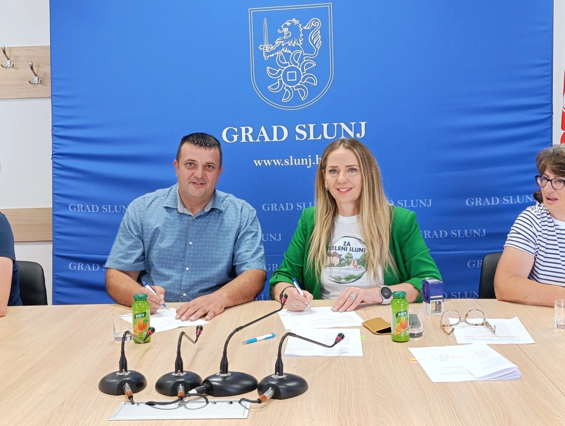 Danas je u Gradskoj vijećnici Grada Slunja održano svečano potpisivanje ugovora o dodjeli bespovratnih potpora namijenjenih razvoju poljoprivrede i poduzetništva na području Grada Slunja.