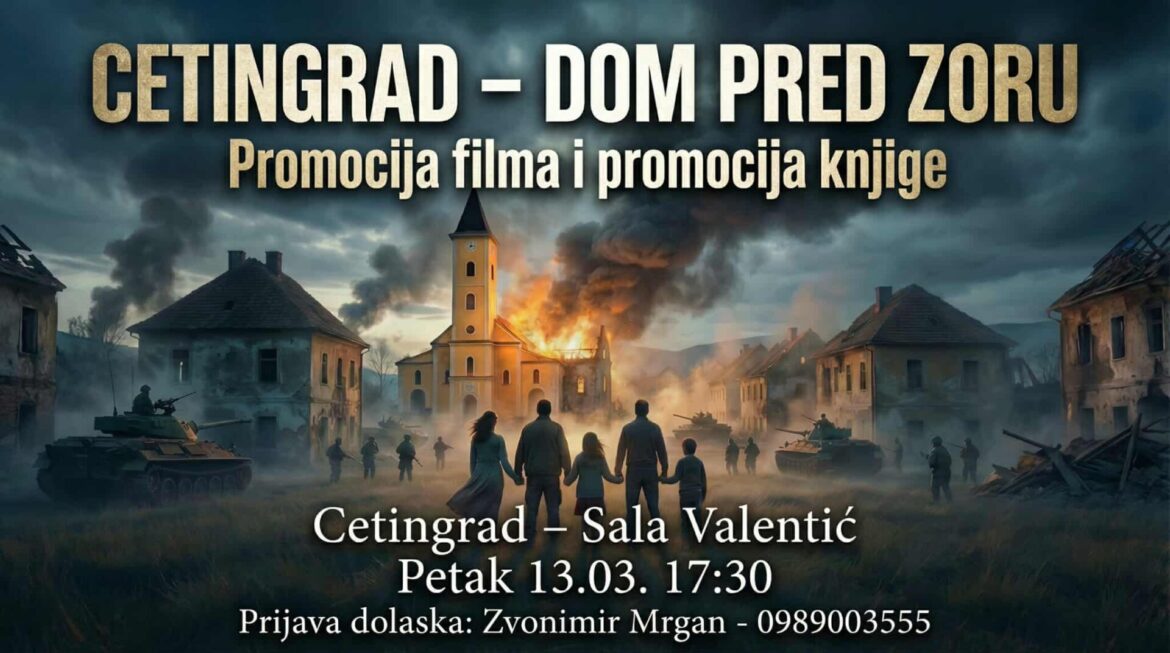 U Cetingradu će se, u petak, 13. ožujka 2026. godine, u restoranu Valentić s početkom u 17:30 održati promocija filma i knjige „Cetingrad – Dom pred zoru“, autora Zvonimira Mrgana.