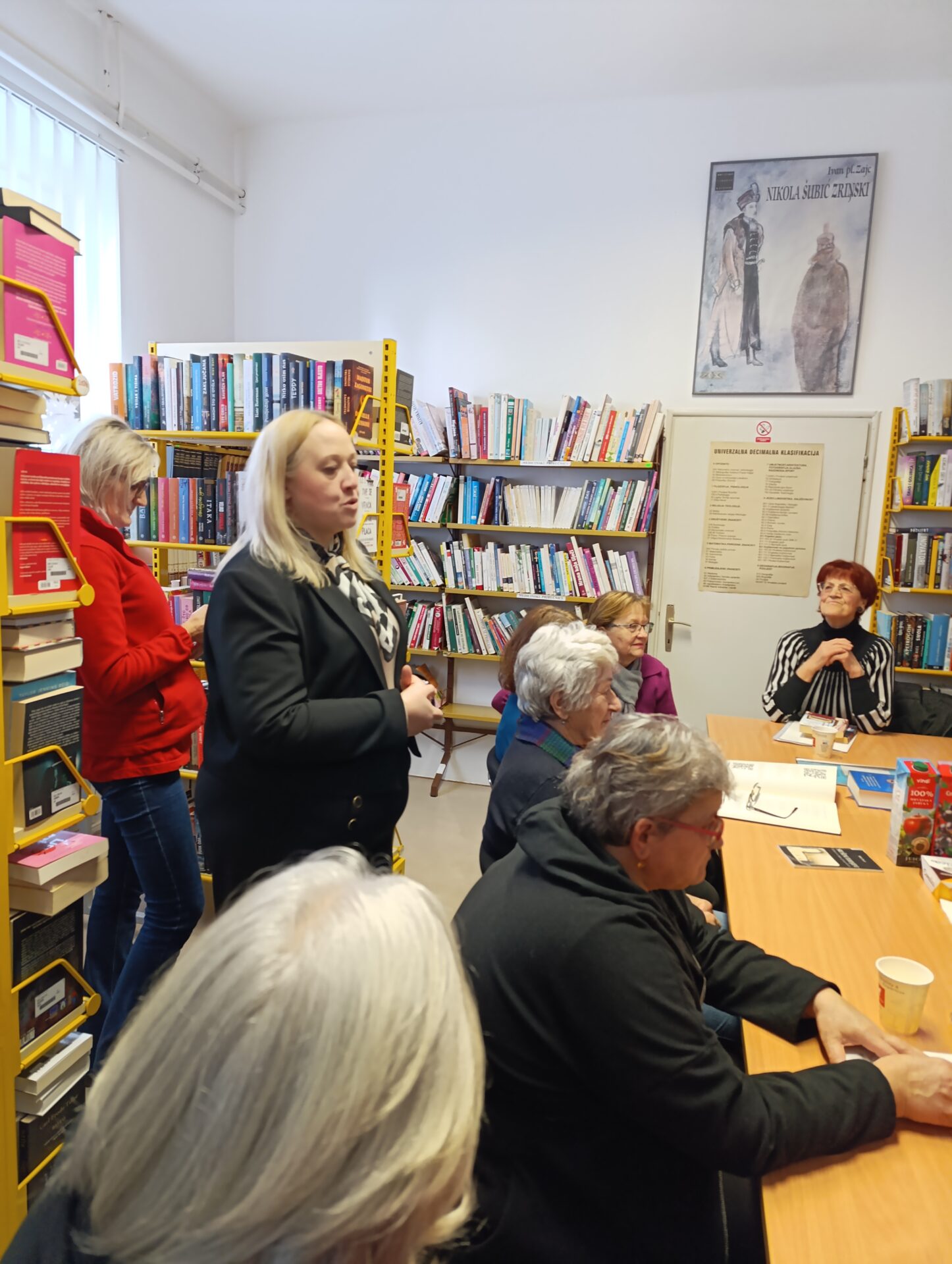 Članovi kluba posjetili su prostorije Knjižnice i čitaonice Slunj gdje su se upoznali sa radom i organizacijom Knjižnice. Voditeljica Kluba, volonterka Mira Vukošić prepustila je odabir knjiga za sljedeći sastanak članovima Kluba.