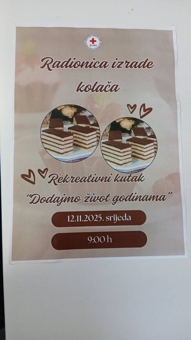 Uz ugodnu atmosferu, miris svježe pečenih kora i čokoladne kreme, sudionici su s entuzijazmom pratili upute te aktivno sudjelovali u pripremi kolača. Radionica je, osim kulinarskog dijela, bila i prilika za druženje, razmjenu iskustava i jačanje zajedništva među članovima kutka.