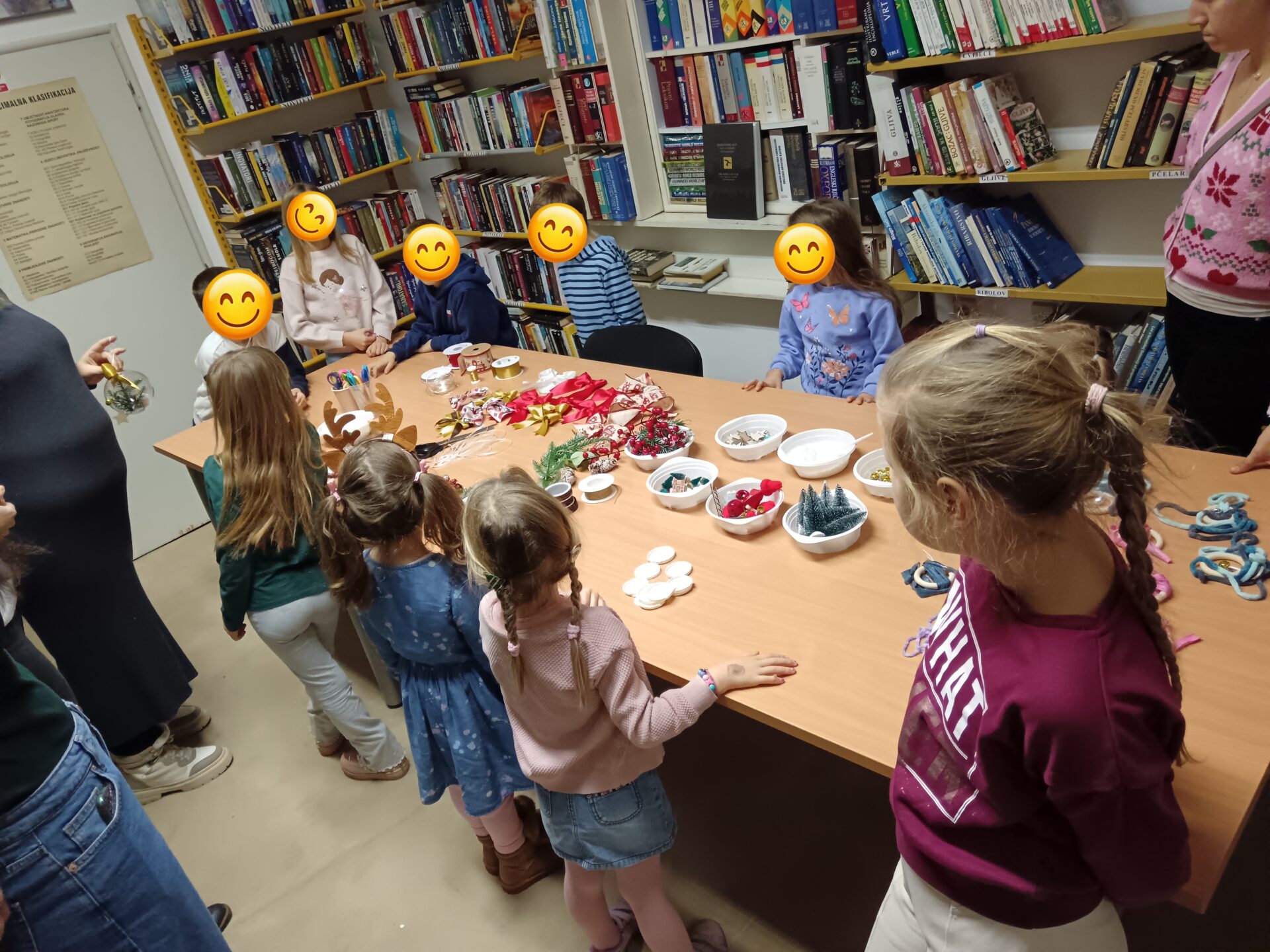 Svako dijete izradilo je svoju unikatnu kuglicu, a voditeljice su pomagale u zahtjevnijim dijelovima rada, posebno pri lijepljenju vrućim ljepilom. Nakon završetka radionice, djeca su sve svoje radove ponijela kući kao uspomenu na ugodno i kreativno druženje u knjižnici.