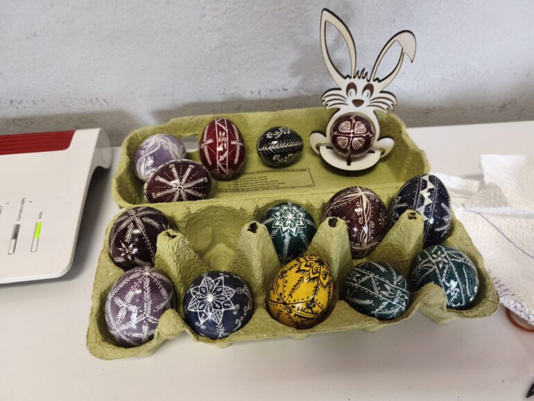 Uz izradu drvenih ukrasa, dio radionice bio je posvećen i očuvanju tradicije pa su sudionici imali priliku okušati se u pisanju pisanica voskom, staroj tehnici ukrašavanja uskrsnih jaja.