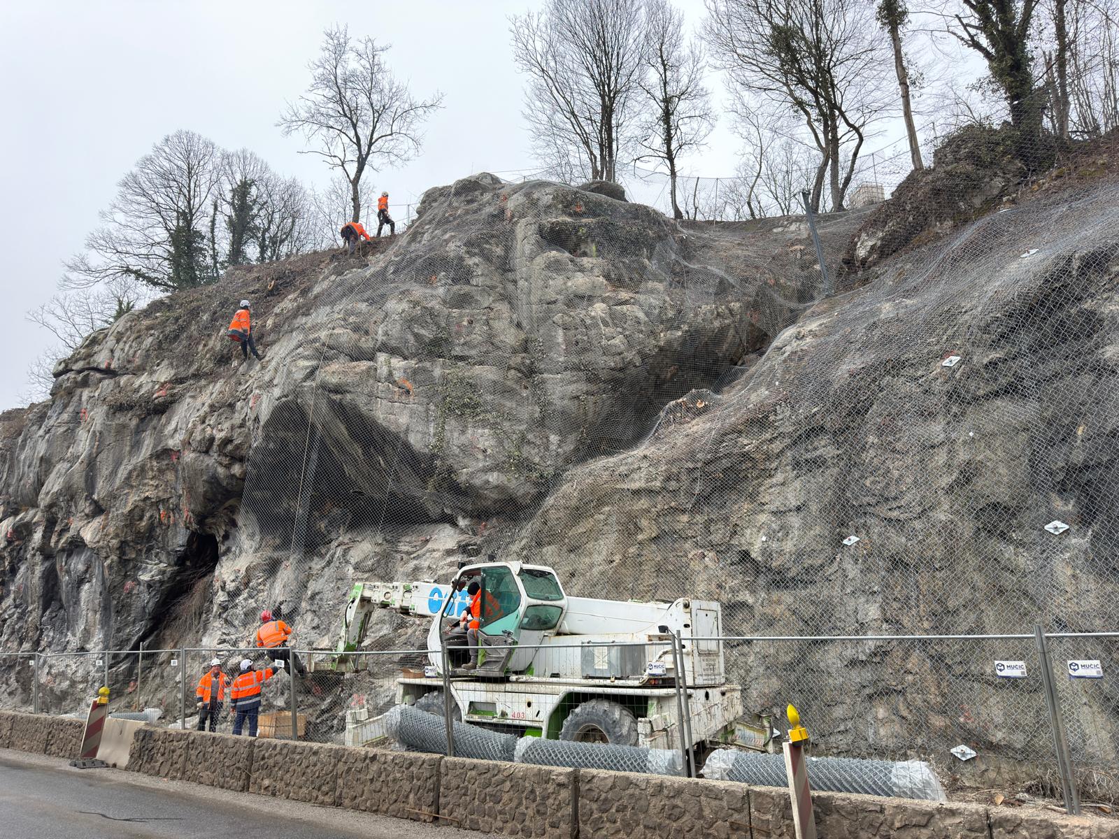 Trenutno se dovršava ugradnja sustava zaštite od odrona, koja uključuje postavljanje duple zaštitne mreže, čeličnih sajli i zaštitne barijere. Veći dio je već postavljen.