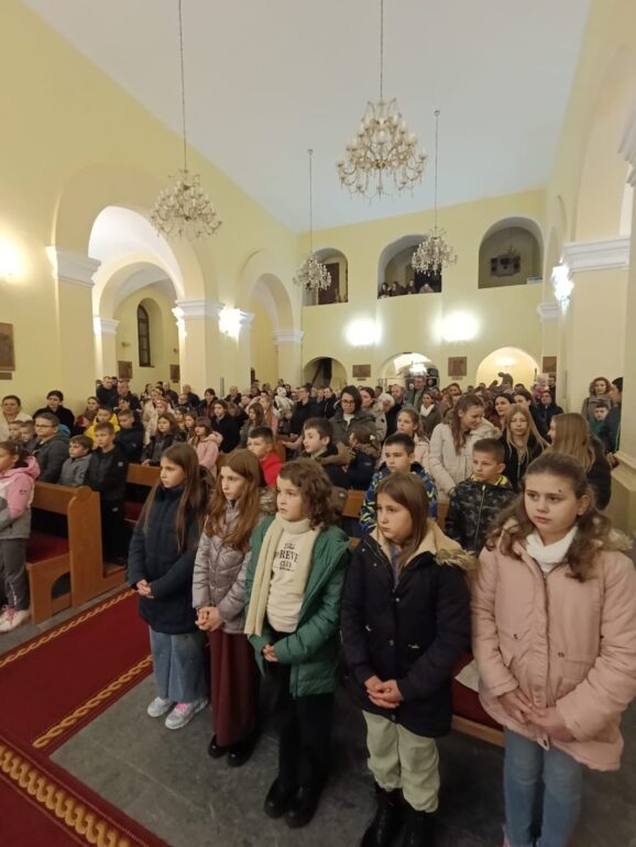 Crkva je bila ispunjena djecom i njihovim roditeljima, a radosno iščekivanje dodatno je poraslo kada se pojavio Sveti Nikola. Djeca su ga dočekala pjesmom, recitacijama i veselim porukama koje su marljivo pripremala sa svojim učiteljicama.
